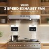 - ENHANCED AIR QUALITY: Vesta’s premium-quality Cincinnati Under-Cabinet Range Hood is equipped with a 2-speed exhaust fan. This efficient system swiftly eliminates a significant portion of smoke and cooking odors from the air in your kitchen, while maintaining minimal noise levels.