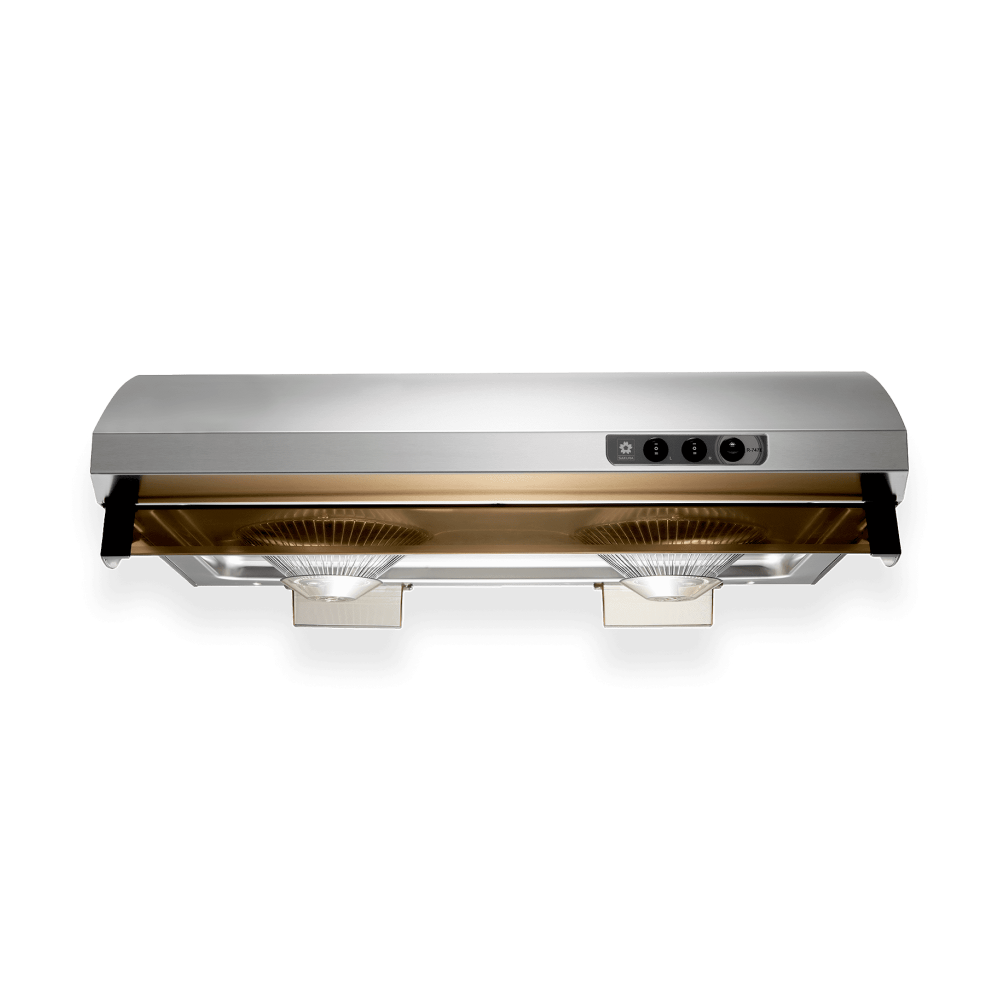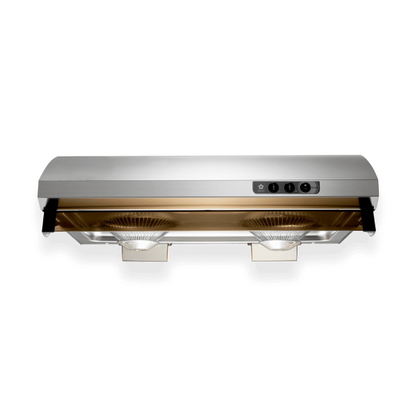 - Teflon coated non-stick fans prevent grease build up inside the hood